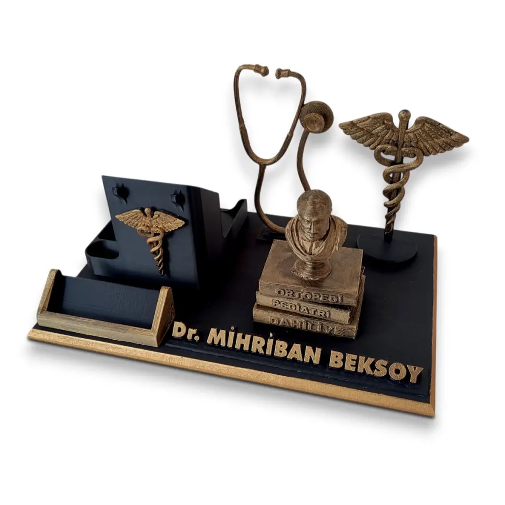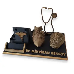 Pratisyen hekimler için özel olarak tasarlanan bu masaüstü isimlik ve organizer seti, çalışma masalarında hem düzen hem de estetik bir görünüm sağlar.