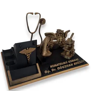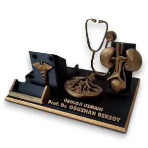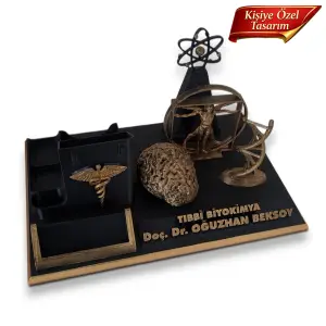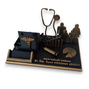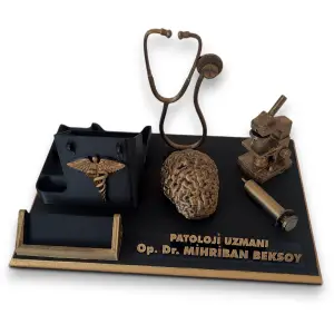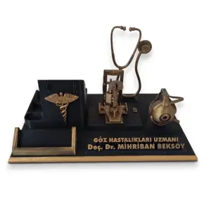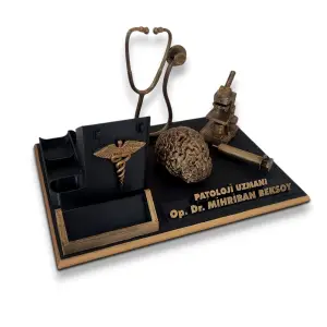 Kişiye özel hazırlanan isimlik bölümüne doktor adı ve unvanı yazdırılabilir. Modern tasarımı sayesinde çalışma masasına profesyonel bir görünüm kazandırır.
