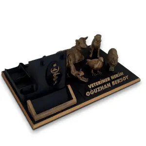 Veteriner hekimler için özel tasarlanmış masa isimliği ve ofis hediyeleri. Kişiye özel veteriner isimliği modelleri ile kliniğinize şık bir dokunuş katın.
